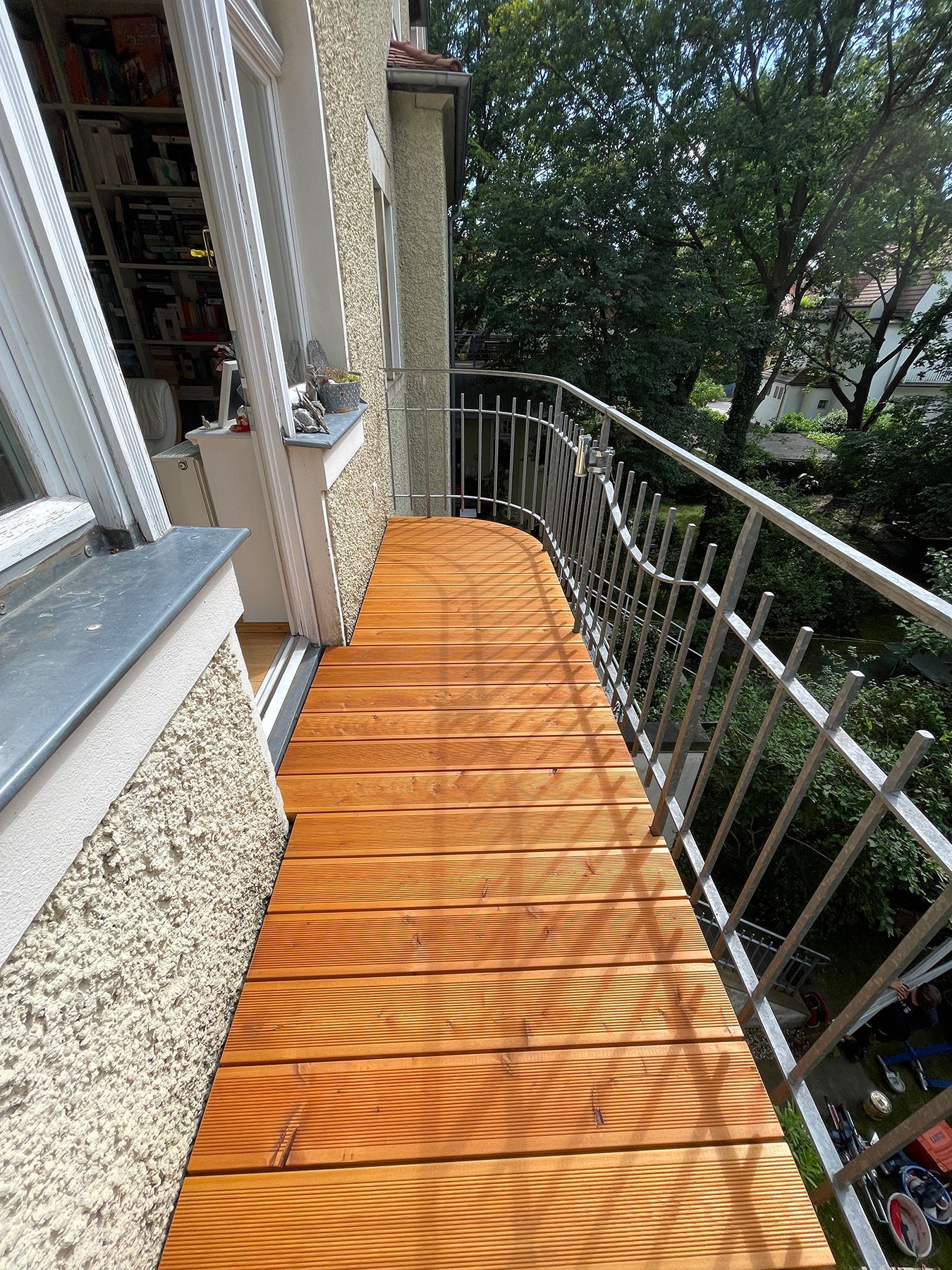 Projekt ansehenErneuerter Balkon mit geöltem Holzbelag aus sibirischer Lärche